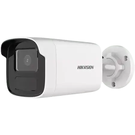 Hikvision DS-2CD1T43G2-IUF 4MP Motion 2.0 Fixed Bullet Network Camera, 120 dB WDR, BLC, HLC, 3D DNR, Supports Human and Vehicle Detection, H.265+ Compression Technology, Built-in microphone for real-time audio, Support on-board storage (up to 256GB), Supplement Light Range Up to 50m, IP67.