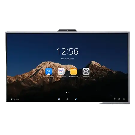 Hikvision DS-D5B65RB/D 65-inch 4K Interactive Flat Panel W/ Camera and Microphone array, 65 inch LED Backlight, 3840 × 2160@60 Hz, 350 cd/m², Color Depth: 10 bit, Contrast Ratio: 4000 : 1 (Typ.), Processor: A72*2 + A53*4, 1.8 GHz, Memory: 4 GB, Built-In Storage: 64 GB, Max 45 point multi-touch, Built-in 2 × 16 W loudspeaker, 8MP Camera, Smart switch between Android system and OPS, Omni-directional 6-array layout, Power Consumption: ≤ 320 W (full load).