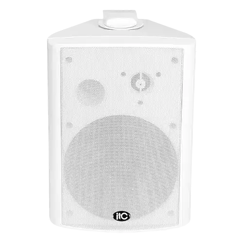 ITC T-775PW 5"+1.5" Two way Wall Mount Speaker, 3.75W-7.5W-15W-30W@100V+8ohm, Transformer Impedance: 2.6KΩ/1.3KΩ/670Ω/330Ω/165Ω, Input: 70V/100V/8Ω, SPL(1W/1M): 92dB, Max. SPL (Rated W/1M): 107dB, Frequency Response (-10dB): 125-18KHzABS body, metal grille, metal bracket, white.